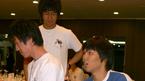 허재 전주 KCC 신임 감독이 18일 오후 서울 서초동 본사 전시관에서 취임식 및 기자회견을 가졌다. 취임식 도중 KCC의 고참 3인방인 이상민(왼쪽)과 추승균 조성원(오른쪽)이 허재 감독에게 꽃다발을 전달한 뒤 기념 촬영하고 있