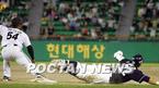 20일 두산 베어스와 LG 트윈스의 잠실 경기 두산의 8회초 무사 1루서 내야 땅볼을 친 홍성흔이 몸을 던지는 헤드 퍼스트 슬라이딩으로 1루에 들어갔지만 아웃되고 있다./잠실=주지영 기자 jj0jj0@poctannews.com (Copyright ⓒ 폭탄뉴스 www