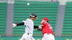 11일 LG 트윈스와 한화 이글스의 잠실경기 LG의 1회말 2사 1,3루 클리어 타석 때 2루 도루를 시도하던 1루 주자 박용택이 한화 2루수 고지행에 쫓기며 되돌아가고 있다. 이 사이 3루 주자 마테오가 스타트, 홈 스틸에 성공했고 박용