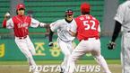 대전 구장에서 재활군 선수들과 함께 재기를 준비하고 있는 한화의 조성민이 예의 환한 표정으로 웃으며 훈련하고 있다./대전=손용호 기자 spjj@poctannews.com (Copyright ⓒ 폭탄뉴스 www.poctannews.com 무단전재 및 재배포 금지)