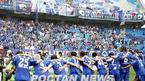 수원 삼성이 8일 수원 월드컵경기장에서 벌어진 2005 삼성 하우젠컵 대회 최종일 성남 일화전에서 1-0으로 승리, 지난해 정규리그부터 4개 대회서 연속으로 우승했다. 수원 선수들이 서포터스 앞에서 우승 세리머니를 펼치고 있