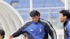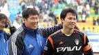 8일 수원 월드컵경기장에서 벌어진 2005 삼성 하우젠컵 대회 최종일 성남 일화전 수원 삼성의 곽희주가 슛한 볼이 골문을 벗어나자 차범근 감독이 직접 슈팅 자세를 취하며 시범을 보이고 있다./수원=손용호 기자 spjj@poctannews.com