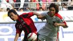 8일 수원 월드컵경기장에서 벌어진 2005 삼성 하우젠컵 최종일 수원 삼성-성남 일화전에서 성남의이성남(오른쪽)이 수원의 김동현과 몸싸움을 벌이고 있다./수원=손용호 기자 spjj@poctannews.com (Copyright ⓒ 폭탄뉴스 www.poctannews.com
