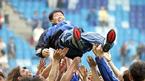 수원 삼성이 8일 수원 월드컵경기장에서 벌어진 2005 삼성 하우젠컵 대회 최종일 성남 일화전에서 1-0으로 승리, 지난해 정규리그부터 4개 대회서 연속으로 우승했다. 수원 선수들이 차범근 감독을 헹가래치고 있다./수원=손용호