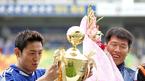 수원 삼성이 8일 수원 월드컵경기장에서 벌어진 2005 삼성 하우젠컵 대회 최종일 성남 일화전에서 1-0으로 승리, 지난해 정규리그부터 4개 대회서 연속으로 우승했다. 고참 김대의(오른쪽)와 최성용이 함께 트로피를 높이 들고 좋