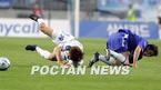 20일 수원 월드컵경기장에서 벌어진 잉글랜드 프리미어리그 2004~2005시즌 챔피언 첼시와 수원 삼성의 친선경기 전반 첼시의 스메르틴이 자신의 태클에 걸려 함께 넘어졌다 일어나는 이병근을 바라보며 묘한 표정을 짓고 있다./