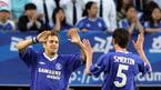 20일 수원 월드컵경기장에서 벌어진 잉글랜드 프리미어리그 2004~2005시즌 챔피언 첼시와 수원 삼성의 친선경기 전반 첼시의 조 콜(왼쪽)이 중앙을 돌파, 선제골을 넣은 뒤 스메르틴과 하이파이브를 나누고 있다./수원=손용호 기