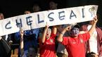 20일 수원 월드컵경기장에서 벌어진 잉글랜드 프리미어리그 2004~2005시즌 챔피언 첼시와 수원 삼성의 친선경기를 관전하는 첼시의 열성 팬들이 '첼시 No. 1'과 '아이 러브 조세(무링요)' 라고 적힌 플래카드를 내걸고 응원하고 있