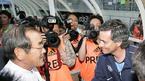 20일 수원 월드컵경기장에서 벌어진 잉글랜드 프리미어리그 2004~2005시즌 챔피언 첼시와 수원 삼성의 친선경기에 앞서 시축을 마친 윤종용 삼성전자 대표이사 부회장이 무링요 첼시 감독과 악수를 하고 있다./수원=손용호 기자 s