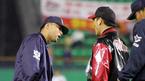 24일 LG 트윈스와 롯데 자이언츠의 잠실 경기 5회초 2사 3루서 롯데 정수근의 3루 선상 타구가 안타로 판정되자 이순철 LG 감독이 파울이라며 항의하고 있다. 이에 오훈규 3루심이 라인을 가리키며 페어볼이라고 설명하고있다./잠