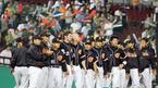 24일 LG 트윈스와의 잠실 경기서 10-5로 승리한 롯데 자이언츠 선수들이 경기 후 그라운드로 나와 일려로 서서 즐거워하고 있다. 롯데는 일요일이던 지난 22일 경기를 이기고 기분 좋게 하루를 쉰 뒤 이번 주 첫 경기도 승리했다./