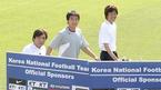 2006 독일월드컵 아시아 최종예선 우즈베키스탄, 쿠웨이트전에 대비해 24일 태극전사들이 파주 NFC에 소집돼 첫 훈련을 실시했다. 훈련을 위해 운동장으로 나온 이동국(뒤의 가운데)이 이춘석(뒤의 왼쪽) 정기동 코치와 걸어 가며