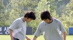 2006 독일월드컵 아시아 최종예선 우즈베키스탄, 쿠웨이트전에 대비해 24일 태극전사들이 파주 NFC에 소집돼 첫 훈련을 실시했다. 대표팀의 막내 박주영이 팀 선배이기도 한 김동진과 밝은 표정으로 얘기를 나누고 있다./파주=손