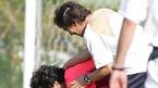 2006 독일월드컵 최종예선 우즈베키스탄으로 출국을 하루 앞둔 30일 오후 파주nfc에서 마지막 훈련이 열렸다.안정환이 게임을 하다 걸리자 이춘석 코치가 벌로 풋샾을 시키고 있다./파주=손용호기자spjj@osen.co.kr [Copyright ⓒ OSEN