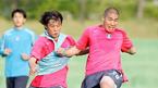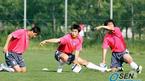 박주영이 2006 독일월드컵 아시아지역 최종예선 우즈베키스탄전을 앞두고 30일 오후 파주 NFC에서 가진 마지막 훈련 도중 대선배 유상철과 밝은 표정으로 훈련을 하고 있다. /파주=손용호 기자spjj@osen.co.kr [Copyright ⓒ OSEN(www.osen.co.