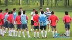 30일 오후 파주 NFC에서 마지막 훈련을 지휘한 본프레레 감독이 훈련이 끝날 즈음 선수들을 모아놓고 불호령을 내리며 훈련을 연장할 것을 지시하고 있다. /파주=손용호 기자 spjj@osen.co.kr [Copyright ⓒ OSEN(www.osen.co.kr) 무단전재 및