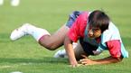 이동국이 30일 축구국가대표팀 훈련 도중 김동진과 부딪쳐 넘어지면서도 공에서 시선을 떼지 않고 있다. /파주=손용호 기자 spjj@osen.co.kr [Copyright ⓒ OSEN(www.osen.co.kr) 무단전재 및 재배포 금지]