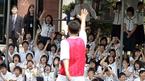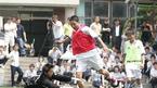 정몽준 대한축구협회장과 이천수가 학원 체육 활성화를 위한 행사의 일환으로 30일 오전 경기도 고양시 화정에 위치한 백양중을 방문, 축구부와 친선 경기를 가졌다. 이천수가 골을 넣고 손을 흔들자 학생들이 좋아하고 있다. /