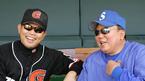 31일 삼성 라이온즈와 롯데 자이언츠의 대구 경기에 앞서 양상문 롯데 감독(왼쪽)이 고려대 2년 후배인 선동렬 삼성 감독을 찾아와 얘기를 나누던 중 가수로 데뷔한 이상훈 얘기가 나오자 양 감독이 “선 감독의 애창곡이 무엇인