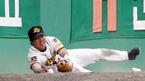 4일 현대 유니콘스와 롯데 자이언츠의 수원 경기 3회초 1사 2,3루 손인호의 파울 플라이를 현대 유격수 채종국이 불펜의 마운드 위에서 잡은 뒤 넘어지고 있다. 이 사이 3루 주자는 태그업, 홈을 밟았고 채종국은 부상을 입어 교체