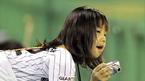 4일 현대 유니콘스와 롯데 자이언츠의 수원 경기서 롯데 유니폼을 입은 소녀 팬이 디지털 카메라를 들고 롯데 선수들을 찍기 위해 운동장을 주시하고 있다./수원=손용호 기자 spjj@osen.co.kr [Copyright ⓒ OSEN(www.osen.co.kr) 무단전재 및
