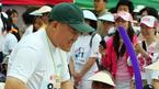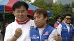 4일 오전 올림픽공원에서 열린 장애인과 함께하는 ‘2005 희망마라톤대회’에 참가한 김정길 대한체육회장과 열린우리당, 한나라당 국회의원들이 황영조 바르셀로나올림픽 금메달리스트와 자리를 함께했다. /주지영 기자 jj0jj0@