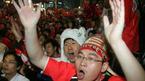 2006 독일월드컵 아시아 최종예선 A조 4차전을 서울 광화문 네거리에서 전광판을 통해 지켜보던 축구팬들이 후반 막판 한국의 박주영이 동점골을 넣자 기쁨을 만끽하고 있다./주지영 기자 jj0jj0@osen.co.kr [Copyright ⓒ OSEN(www.osen.co.kr