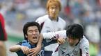5일 인천 문학 월드컵경기장에서 열린 인천 유나이티드와 전남 드래곤즈의 경기서 후반 역전 결승골을 넣은 전재호가 장외룡 감독에게 달려가 포옹하고 있다. 인천이 전남에 3-1로 역전승을 거두고 정규리그 4전 전승을 기록했