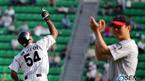 5일 잠실 구장서 벌어진 SK 와이번스전에서 5-2로 승리, 5연패서 벗어난 LG 선수들이 경기 후 이순철 감독과 하이파이브를 나누며 즐거워하고 있다. /잠실=주지영 기자jj0jj0@osen,co.kr [Copyright ⓒ OSEN(www.osen.co.kr) 무단전재 및 재배포