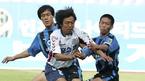 5일 인천 문학 월드컵경기장에서 열린 인천 유나이티드와 전남 드래곤즈의 경기 후반 교체 멤버로 들어온 전남의 고종수가 인천 이상헌(왼쪽)과 노종건의 마크를 피해 돌파를 노리고 있다. /인천=손용호 기자spjj@osen.co.kr [Copyrigh