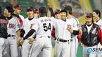 7일 LG 트윈스와 현대 유니콘스의 잠실경기 10회말 1사 2루서 한규식의 끝내기 안타로 현대를 5-4로 꺾은 LG 선수들이 기뻐하고 있다. /잠실=주지영 기자 jj0jj0@osen.co.kr [Copyright ⓒ OSEN(www.osen.co.kr) 무단전재 및 재배포 금지]