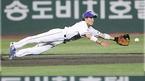 9일 문학구장에서 열린 SK 와이번스와 기아 타이거즈의 경기 기아의 8회초 2사 3루서 장성호의 타구를 SK 유격수 김민재가 다이빙하며 캐치를 시도했지만 약간의 차이로 글러브를 지나가고 있다./인천=손용호 자spjj@osen.co.kr [Copyrig