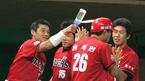 9일 문학구장에서 열린 SK 와이번스와 기아 타이거즈의 경기 기아의 8회초 1사 만루서 김민철의 주자일소 3루타로 홈에 들어온 주자들을 이종범이 페트병으로 머리를 쳐주며 환영하고 있다./인천=손용호 기자spjj@osen.co.kr [Copyright