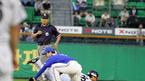15일 삼성 라이온즈와 LG 트윈스의 잠실경기 9회말 2사 후 LG 이성렬의 대타로 나온 조인성의 파울 타구에 최수원 구심이 목을 맞고 주저앉아 있다. /잠실=주지영 기자 jj0jj0@osen.co.kr [Copyright ⓒ OSEN(www.osen.co.kr) 무단전재 및 재배포