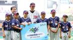 15일 삼성 라이온즈와 LG 트윈스의 잠실경기에 앞서 LG의 박용택이 한국야구위원회(KBO)가 선정한 5월 타자 부문 MVP상을 수상한 뒤 모교인 고명 초등학교 야구부 후배들에게 상금의 절반인 150만원을 장학금으로 주고 기념 촬영하