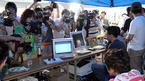 잉글랜드 프리미어리그 맨체스터 유나이티드 이적이 임박한 것으로 알려진 박지성(PSV 아인트호벤)이 16일 저녁 부천 공설운동장에서 게토레이 CF를 촬영했다. 박지성이 모니터를 볼 때 매스컴의 카메라가 집중되고 있다./부천=