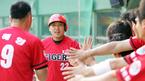 22일 기아 타이거즈와 LG 트윈스의 잠실경기 기아의 4회초 2사 3루 장성호 타석 때 포수 김정민의 패스트볼로 홈을 밟은 김상훈이 동료들과 함께 기뻐하고 있다./잠실=주지영 기자 jj0jj0@osen.co.kr [Copyright ⓒ OSEN(www.osen.co.kr) 무단전