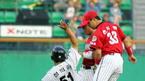 22일 기아 타이거즈와 LG 트윈스의 잠실경기 기아의 1회초 1사 1,2루서 임성민이 유격수 앞 땅볼을 치자 2루로 달리던 마해영이 LG 유격수 권용관의 송구에 행여 맞을까봐 두 손으로 머리를 감싸며 몸을 움츠리고 있다. 임성민까지