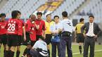 22일 부천 종합운동장에서 열린 부천 SK와 인천 유나이티드의 경기 전반 부천의 아고스가 상대에게 침을 뱉었다는 이유로 퇴장을 당하자 정해성 부천 감독이 선수들을 터치라인 부근으로 불러 놓고 격한 표정으로 항의하고 있