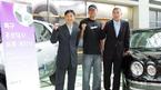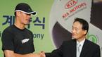 기아자동차가 유럽 무대에서 활약하는 국가대표 스타 이영표 설기현 박지성 차두리를 위촉, 23일 오전 서울 양재동의 본사에서 자동차 증정식을 가졌다. 본인들의 희망에 따라 박지성은 쏘렌토, 나머지 3명은 오피러스를 받았
