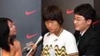 한국인 최초로 잉글랜드 프리미어리거가 된 박지성(맨체스터 유나이티드)이 25일 구단 신체검사를 마치고 귀국했다. 박지성이 인천공항 스카이 파라다이스 라운지에서 가진 공식 기자회견을 마치고 일어선 뒤 한 여기자가 마이