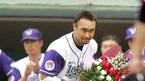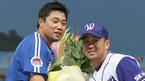 25일 인천 문학 구장에서 벌어진 SK 와이번스와 삼성 라이온즈의 경기에 앞서 SK의 정경배가 1000경기 출장을 기념 꽃다발을 받고 관중들에게 인사하고 있다. 정경배의 1000경기 출장은 프로 통산 68번째다./인천=손용호 기자 spjj@ose