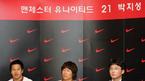 맨체스터 유나이티드와 계약, 한국인 최초로 잉글랜드 프리미어리그에 입성한 박지성(24)이 25일 인천국제공항에서 기자회견을 갖고 ‘세계 최고의 팀’에 입단하게 된 소감을 밝혔다. 박지성은 기자회견 모두에 밝힌 소감을
