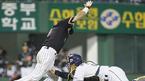 28일 잠실 구장에서 벌어진 두산 베어스와 롯데 자이언츠의 경기 롯데의 7회초 1사 1,2루 최준석의 안타 때 홈으로 쇄도한 2루 주자 정수근이 두산 포수 용덕한의 블로킹과 태그를 피한 뒤 몸을 날려 홈 플레이트를 집자 용덕한이