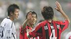 29일 서울 상암 월드컵경기장에서 열린 FC 서울과 전북 현대의 경기가 서울의 2-0 승리로 끝난 뒤 전북의 박동혁이 국가대표 후배인 서울 김동진의 머리를 잡고 마치 '너 때문에 졌다'는 듯한 동작을 취하고 있다./상암=손용호 기