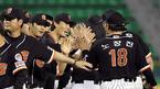 30일 잠실 구장에서 벌어진 두산 베어스와 롯데 자이언츠의 경기서 롯데가 두산에 3-1로 승리하며 3연승을 거뒀다. 경기가 끝난 뒤 선발승을 따낸 이상목(왼쪽에서 세 번째)이 마무리로 나와 1⅓이닝을 2볼넷 무실점으로 막고 세