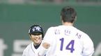1일 문학경기장에서 벌어진 sk 와이번스와 두산 베어스의 경기 sk 연장 10회말 2사 2루 끝내기 안타를 친 이호준이 자신을 축하 해 주기 위해 달려오는 김민재를 밝은 표정으로 쳐다보고 있다./인천=손용호기자spjj@osen.co.kr [Copyright