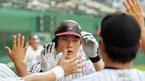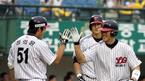 2일 기아 타이거즈와 LG 트윈스의 잠실경기 1회 말 무사 1, 2루에서 이성렬이 역전 3점 홈런을 날린 뒤 의기양양한 표정을 지으며 덕아웃 앞에서 동료 선수들과 하이파이브를 하고 있다. /잠실=주지영 기자 jj0jj0@osen.co.kr [Copyright