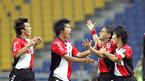 6일 부산 아시아드 주경기장에서 벌어진 부산 아이파크와 FC 서울의 경기 후반 부산의 뽀뽀가 동점골을 뽑아낸 뒤 동료들과 기쁨을 나누고 있다. 그러나 부산은 다시 킥오프하자 마자 서울의 박주영에게 결승골을 내줘 1-2로 지