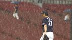 7일 잠실구장에서 LG 트윈스와 두산 베어스의 경기가 비가 간간이 내리는 가운데 열렸다. 1-1 동점이던 2회말 LG의 공격 때 급작스런 소나기가 내리자 두산 선발 투수 박명환이 덕아웃으로 발길을 돌리고 있다./잠실=손용호 기자sp